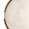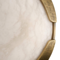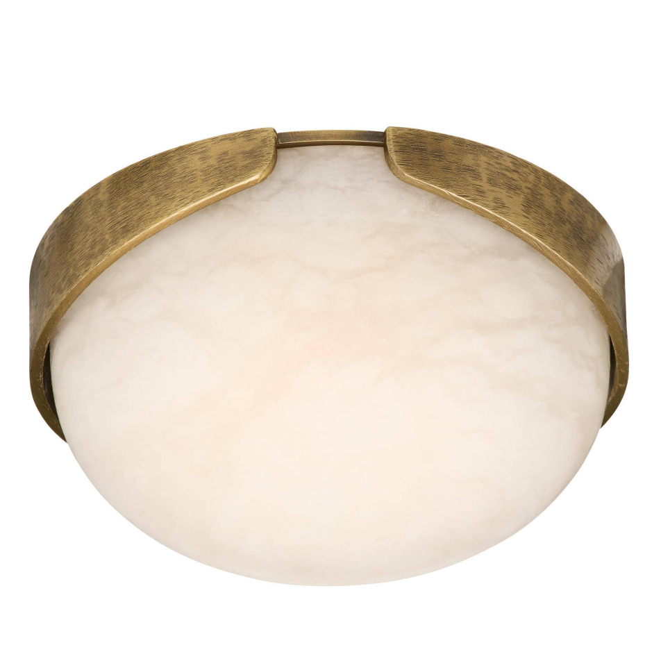 Emulating the refined detail of a fine jewelry bezel, the Elara Mini Flush Mount reads as a luminous ornament for the ceiling. Its antique brass frame introduces warm, textural contrast against the smooth, hand-carved white alabaster it gently cradles, creating a balance of structure and softness. Compact in scale yet rich in presence, it lends a tailored, artisanal elegance to hallways, bedrooms, and living spaces.