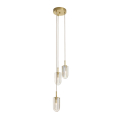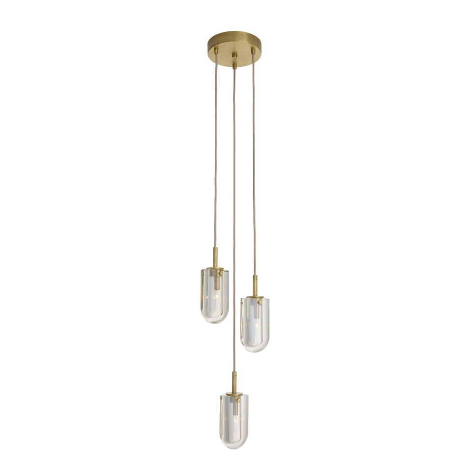 The Javier Multi-Port Chandelier brings a visually dynamic presence to any interior with its configuration of three drops. Each bullet-shaped champagne crystal shade is elegantly suspended by a cloth cord, culminating at an antique brass iron canopy. Crafted from thick, richly reflective crystal, each shade captures and refracts light with striking depth and dimension. For added versatility, the height of each piece is adjustable at the canopy by the cord, allowing you to customize the dramatic interplay of light to fit your space perfectly.